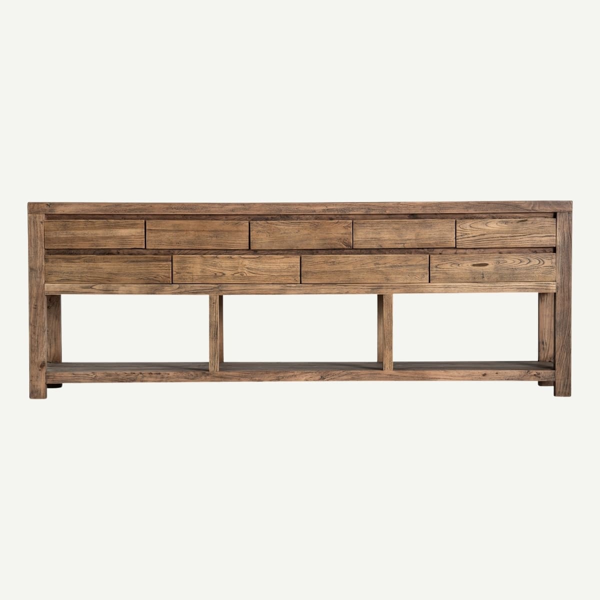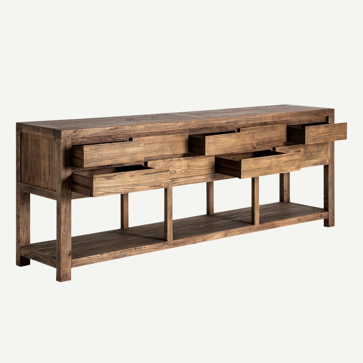 Imposante et élégante, cette armoire en bois d’orme massif de 220 cm de haut s’affirme avec la noblesse naturelle des pièces d’exception. Derrière ses portes pleines se révèle un vaste espace de rangement, pensé pour accueillir vêtements, linge ou objets du quotidien avec ordre et discrétion. Les nuances profondes et les veinures authentiques de l’orme dévoilent une matière vivante, où chaque détail témoigne du savoir-faire traditionnel.