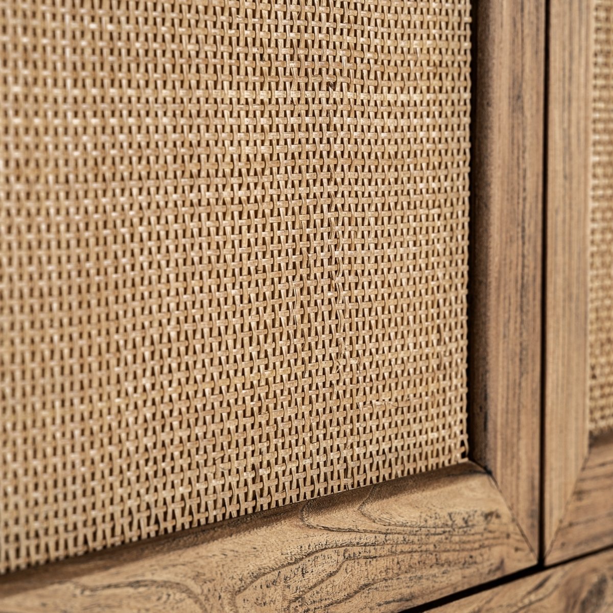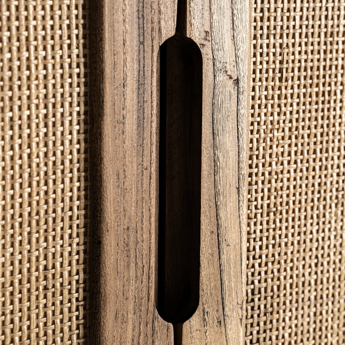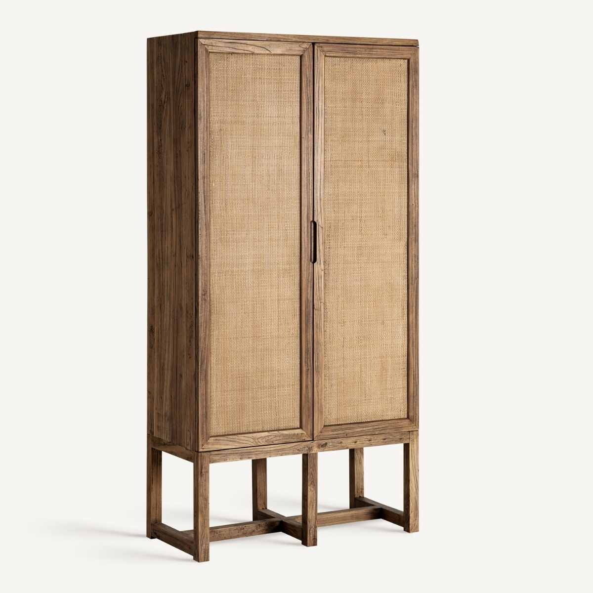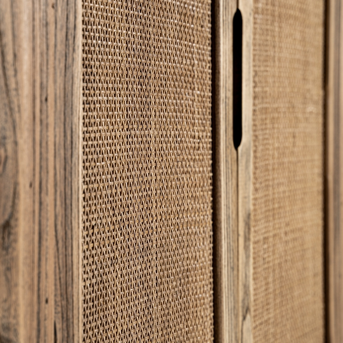 Cette armoire champêtre en bois d’orme et rotin semble née d’un intérieur rural baigné de lumière, où le temps ralentit et la matière raconte. Le veinage profond de l’orme dialogue avec la douceur tressée du rotin, laissant circuler l’air et le regard, tandis que ses lignes simples et sa structure surélevée évoquent un mobilier authentique, fonctionnel et sincère. Chaque porte s’ouvre comme un geste ancien, révélant un espace pensé pour durer, entre robustesse et légèreté visuelle. Elle trouve naturellement sa place dans une maison de caractère, et se révèle encore davantage lorsqu’elle est associée au buffet de la même collection, pour composer un ensemble harmonieux et cohérent au cœur de votre intérieur.