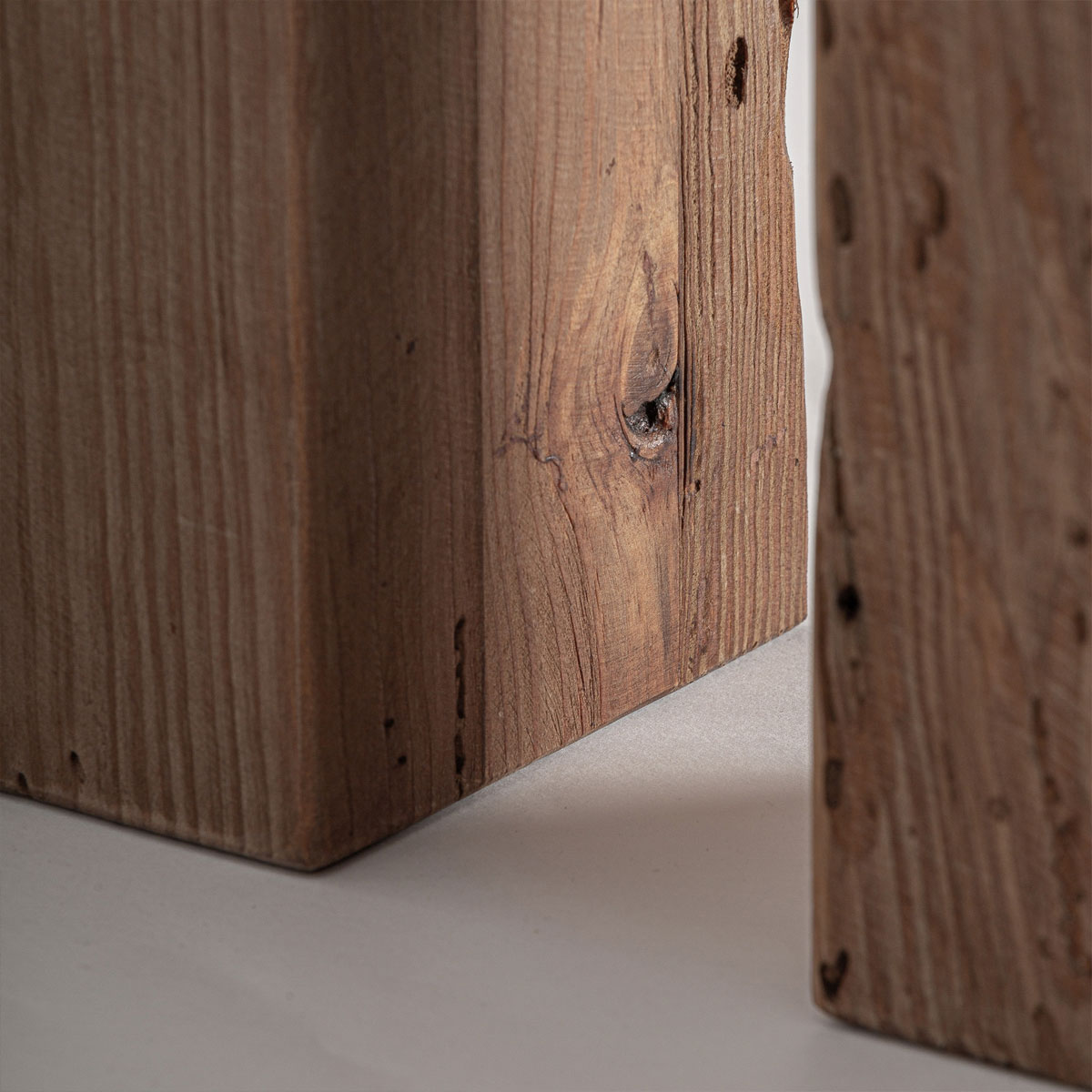Le bois recyclé est un bois avec une histoire : il peut présenter des nuances, des aspérités, des irrégularités et une patine naturelle qui font tout son charme. Pour entretenir votre banc bois massif recyclé 220 cm CYRIL, dépoussiérez régulièrement avec un chiffon doux et sec, et utilisez une brosse douce si le bois est très texturé. Pour un nettoyage léger, passez un chiffon très légèrement humide avec un savon doux si nécessaire, puis séchez immédiatement afin d’éviter les traces et l’humidité qui pourrait pénétrer dans les zones plus poreuses.
