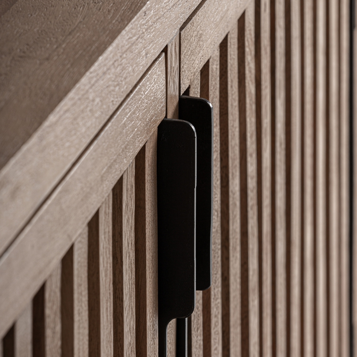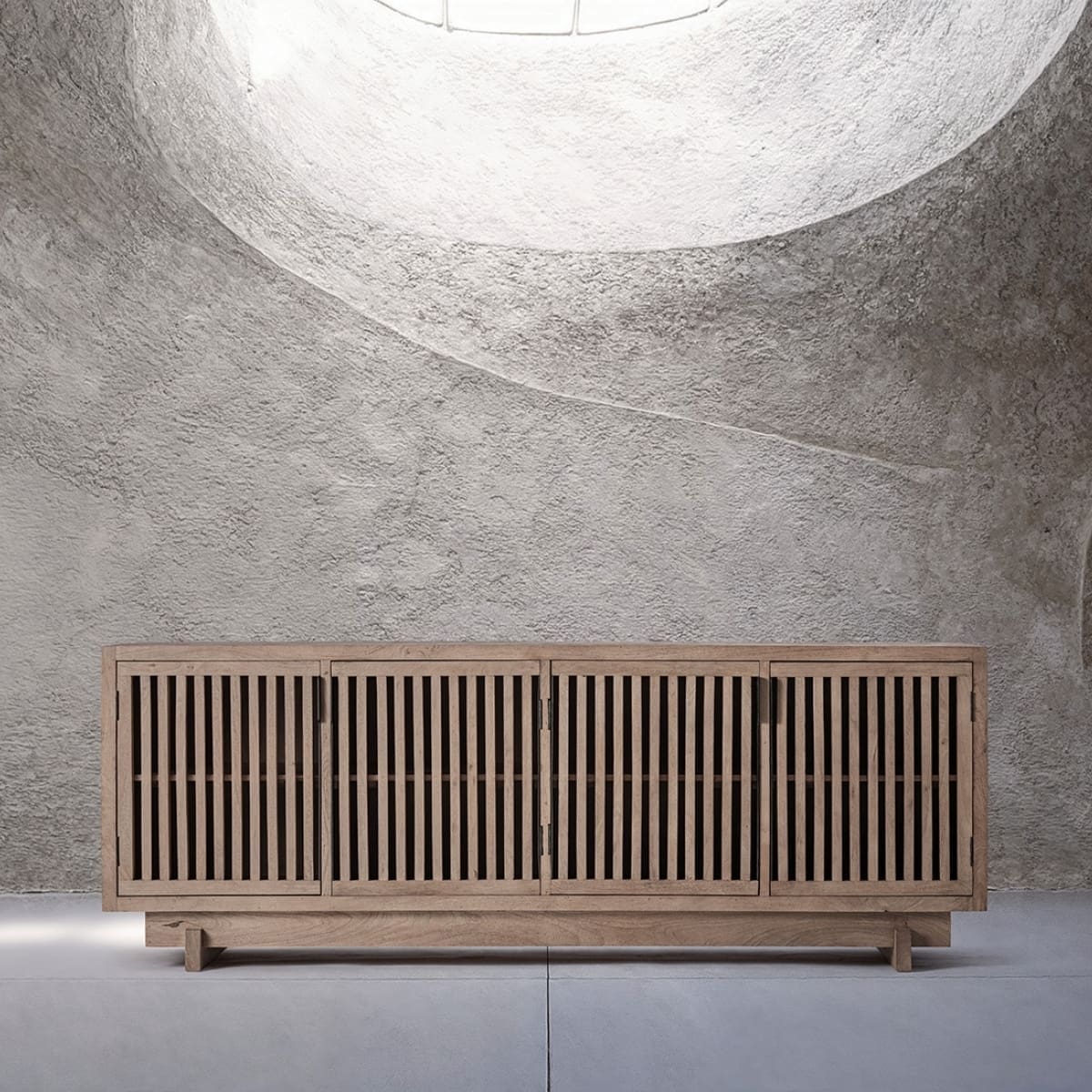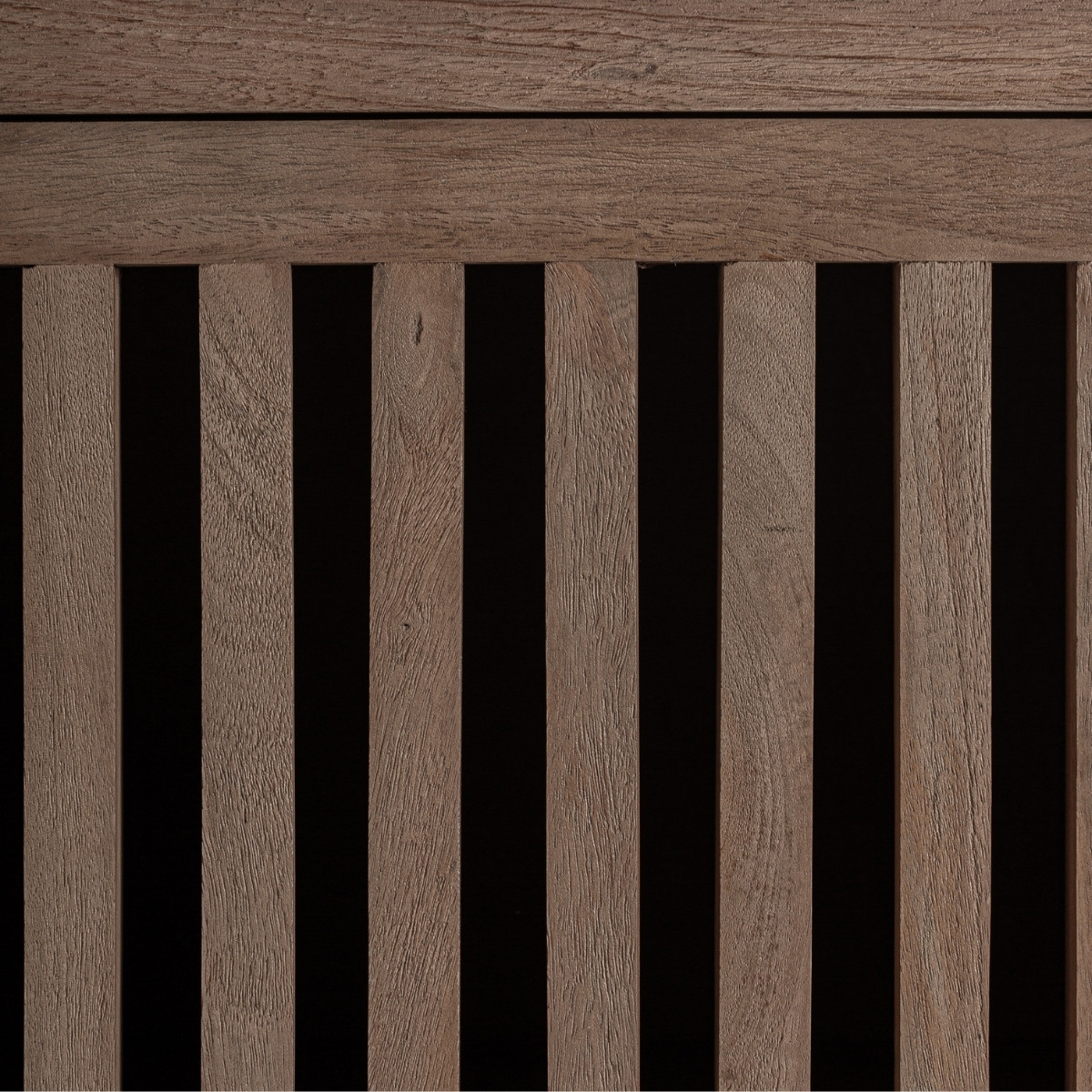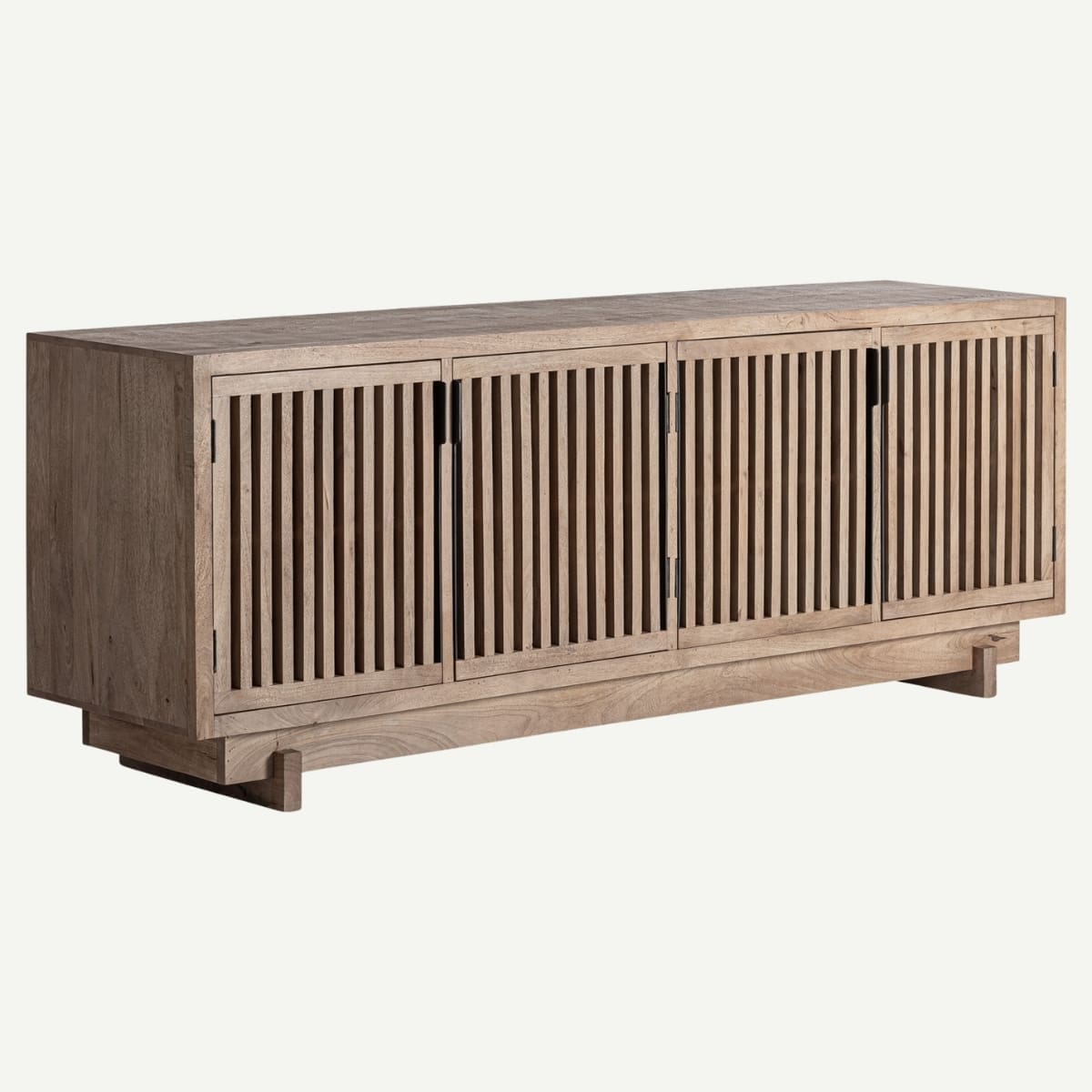 Majestueux buffet en manguier massif de 234 cm, dont les façades lattées dessinent une danse d’ombres et de lumière. Derrière ses 4 portes se révèle un espace généreux, pensé pour accueillir l’essentiel avec grâce. Un meuble de caractère, où la force du bois rencontre la délicatesse du design.