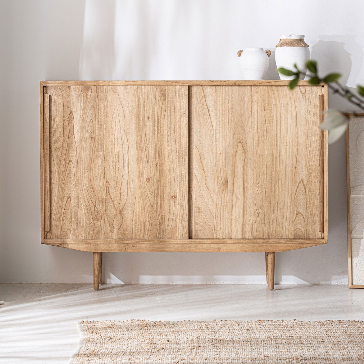 Avec sa ligne douce et son allure parfaitement équilibrée, ce buffet salle à manger bois de 150 cm en bois de mindi massif apporte à la pièce une présence naturelle, sobre et lumineuse. Ses 2 portes coulissantes glissent avec discrétion dans le dessin du meuble, révélant un rangement pratique sans rompre la pureté de ses lignes. Le bois de mindi massif laisse apparaître un veinage vivant, chaleureux et sincère, qui donne à l’ensemble ce charme calme des matières vraies. Porté par des pieds fins qui allègent sa silhouette, il compose un meuble à la fois fonctionnel et apaisant, pensé pour habiller l’espace avec simplicité, élégance et douceur. Pour prolonger cette harmonie naturelle, découvrez aussi notre table de salle à manger en marbre et bois massif.