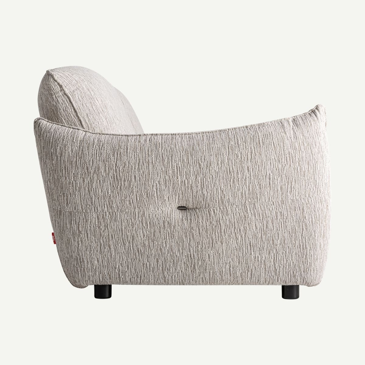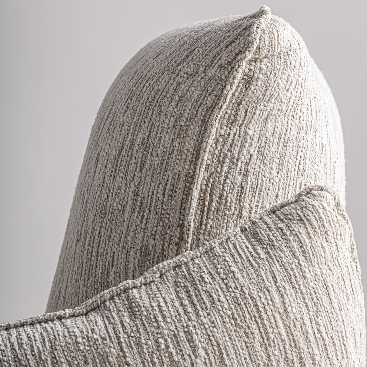 Ce canapé deux places séduit par ses formes douces et arrondies, pensées pour le confort et la détente. Ses accoudoirs légèrement ouverts invitent à s’y installer, à partager un moment ou simplement à se reposer. Revêtu d’un tissu chenille gris marbré, il joue avec la lumière et diffuse une atmosphère apaisante. À la fois accueillant et raffiné, il devient le cœur du salon, un lieu où le calme et la convivialité se rencontrent.