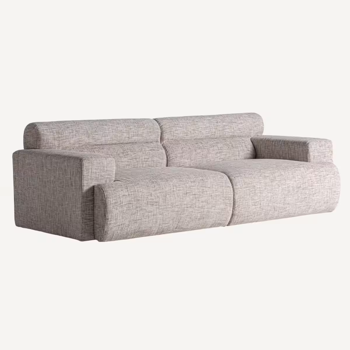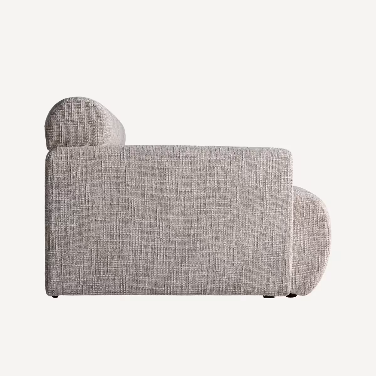 Le canapé 3 places Nara conjugue la rigueur des lignes à la tendresse du toucher. Sa silhouette monolithique, enveloppée d’un tissu chenille beige marbré au tissage raffiné, invite à la détente absolue. Chaque courbe semble façonnée par la main, chaque couture pensée pour le regard et le geste.