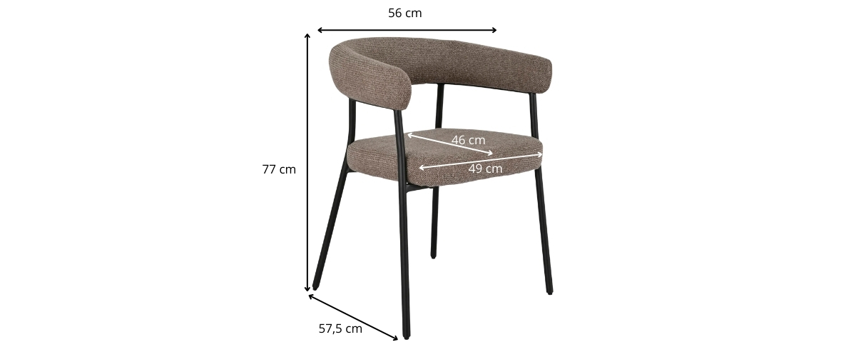 Sublimez votre salle à manger avec ce lot de 2 chaises minimalistes en tissu chenillé marron et piètement en métal noir, conçu pour un rendu premium et une présence visuelle forte. Le revêtement chenille texturé offre une matière riche, douce au toucher, avec un relief subtil qui valorise la couleur marron et renforce l’effet haut de gamme. L’assise épaisse et confortable, associée à un dossier enveloppant, assure un excellent maintien au quotidien, idéal pour les repas prolongés.