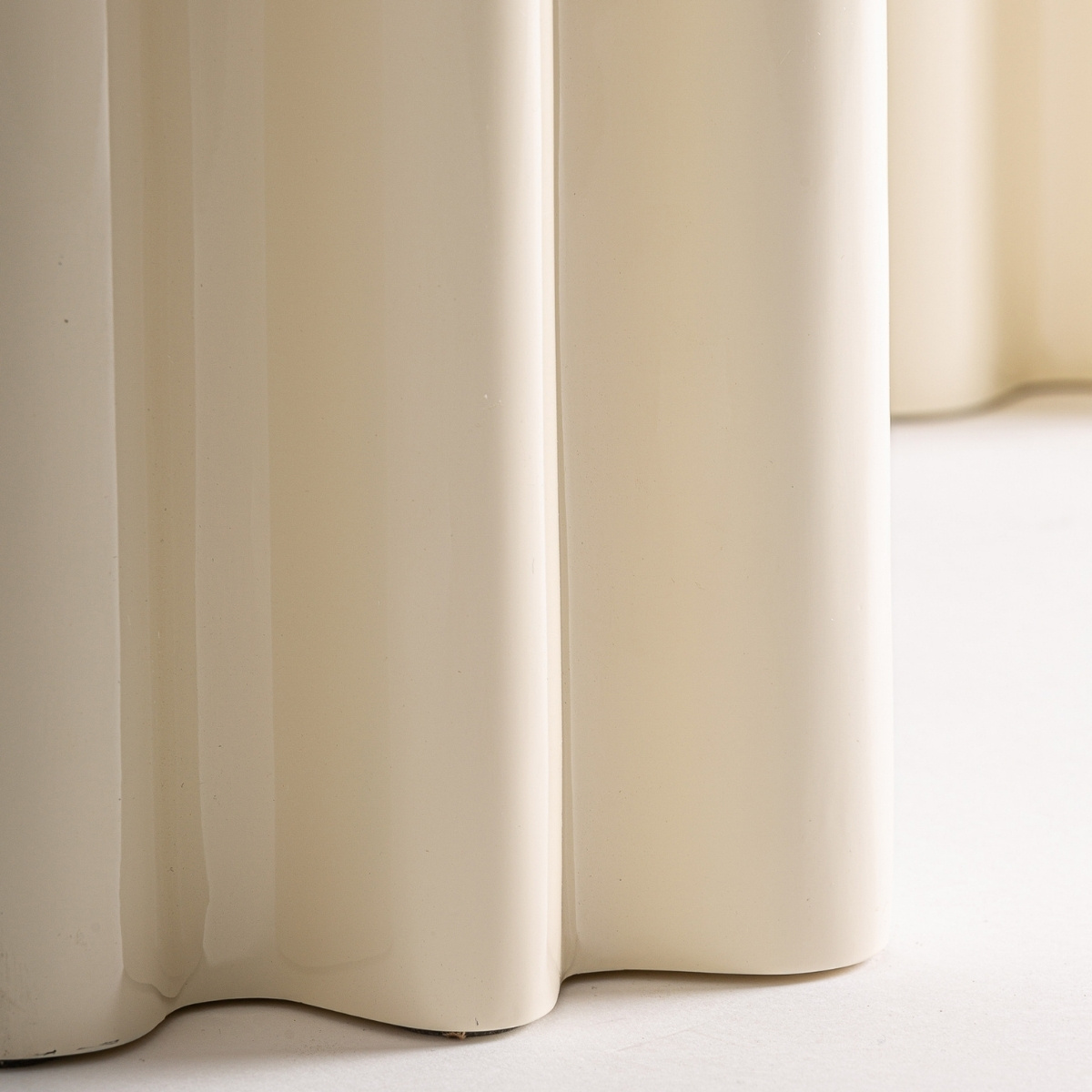 Avec sa ligne douce et sa présence lumineuse, cette console laquée blanche de 150 cm semble presque flotter dans l’espace. Sa finition brillante capte la lumière avec délicatesse, tandis que ses formes arrondies et son dessin monolithique lui donnent une allure sculpturale, à la fois pure et contemporaine. Élégante sans excès, elle habille une entrée, un salon ou un couloir d’une note claire et apaisante, comme un trait d’architecture posé avec justesse. Une console au charme minimaliste, pensée pour faire entrer dans l’intérieur une beauté calme, fluide et résolument raffinée. Pour prolonger cet esprit épuré, découvrez aussi notre table basse laquée crème.