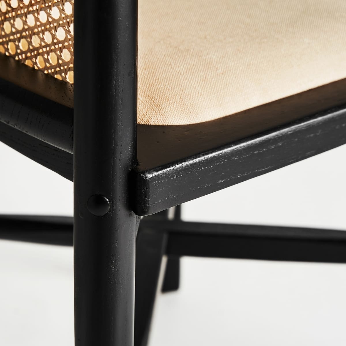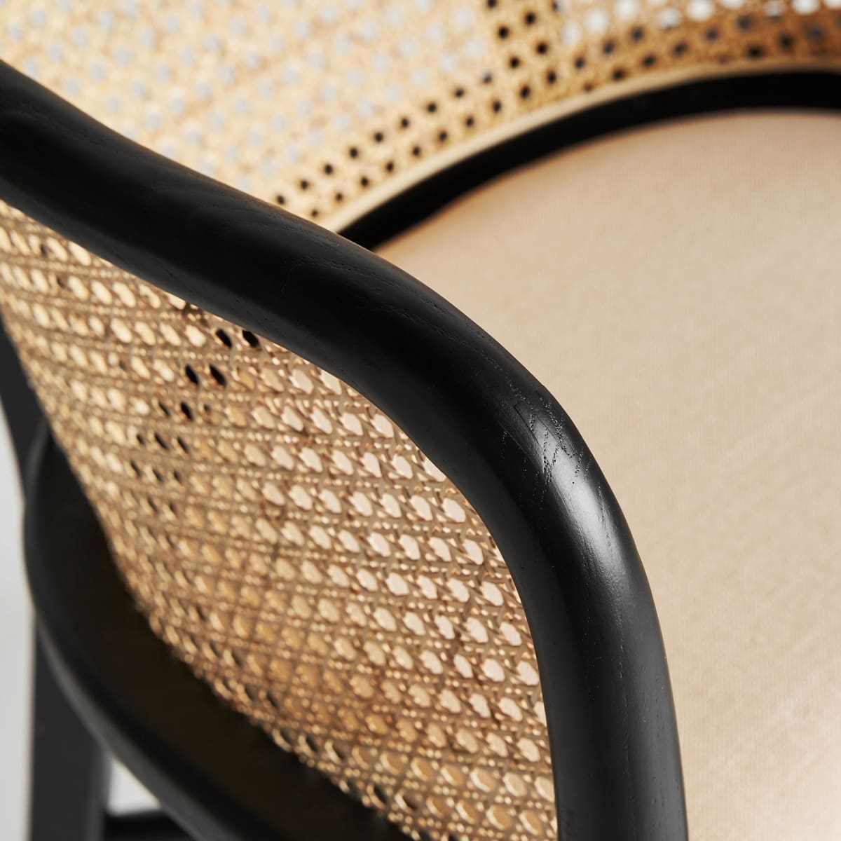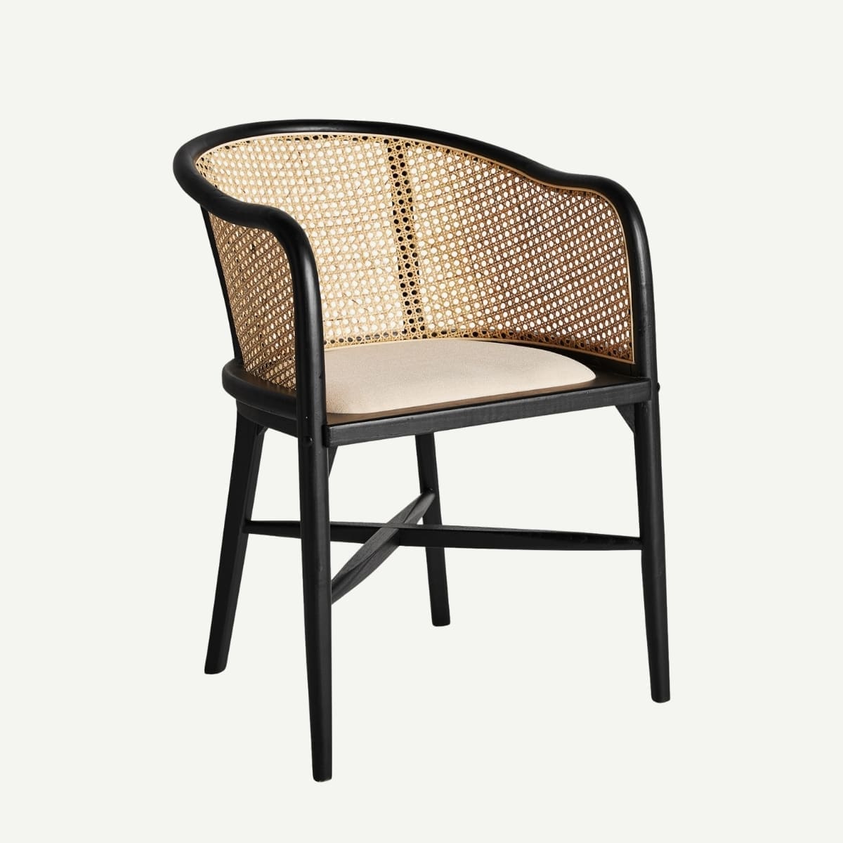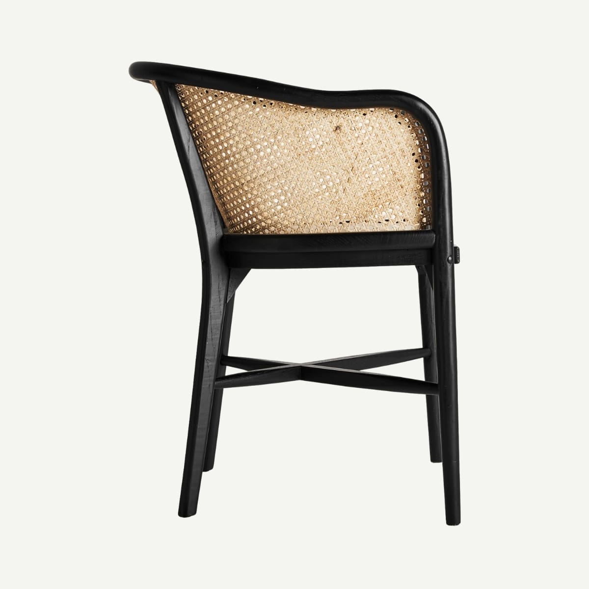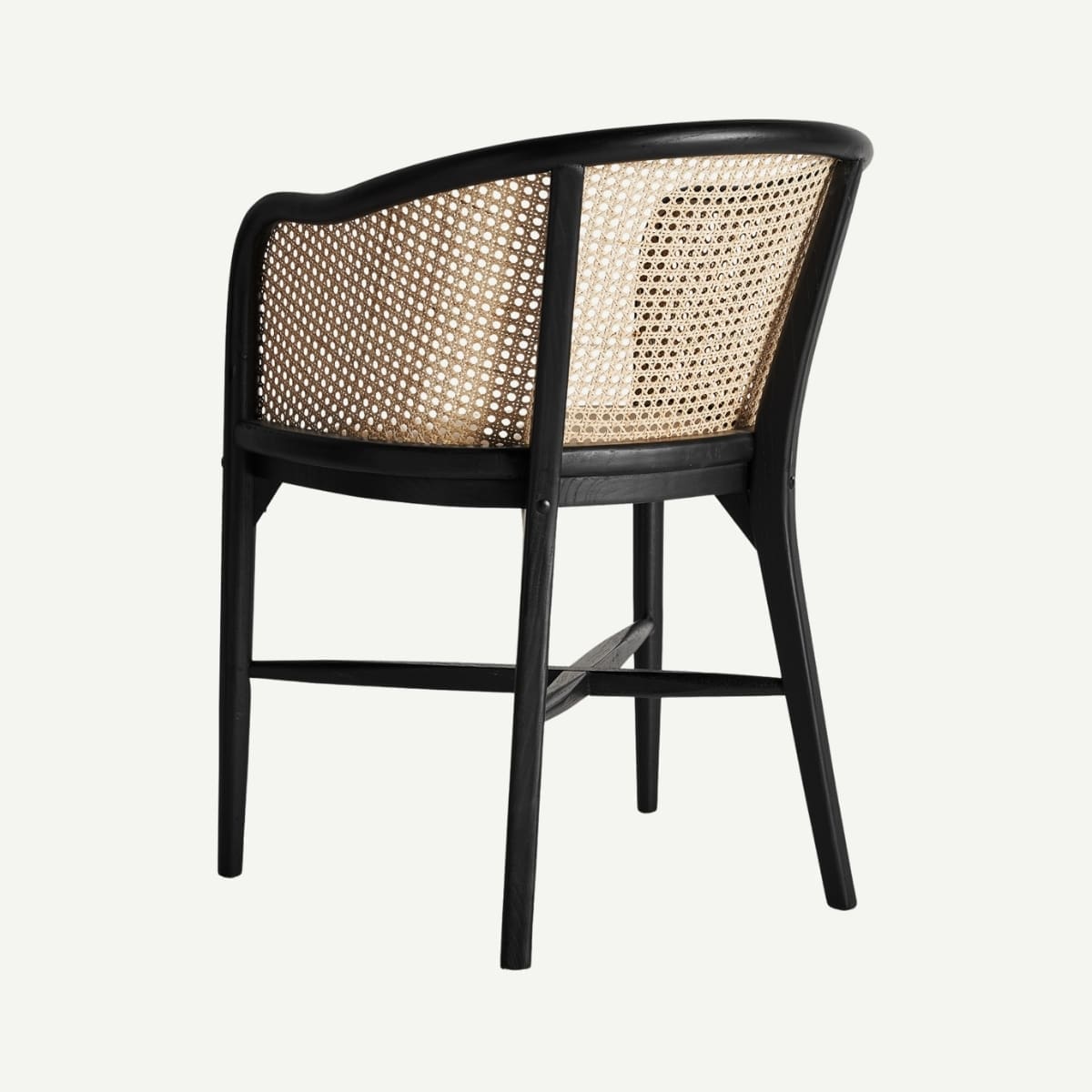Cette chaise mêle la force du bois de bouleau noir à la délicatesse du rotin tressé, formant un dossier aux courbes aériennes qui enveloppent le dos avec douceur. Son assise en lin beige naturel apporte confort et raffinement, tandis que le contraste entre la structure sombre et les fibres claires crée une harmonie visuelle pleine de caractère. Elle trouvera aussi bien sa place autour d’une table de salle à manger que comme assise d’appoint dans un intérieur raffiné.