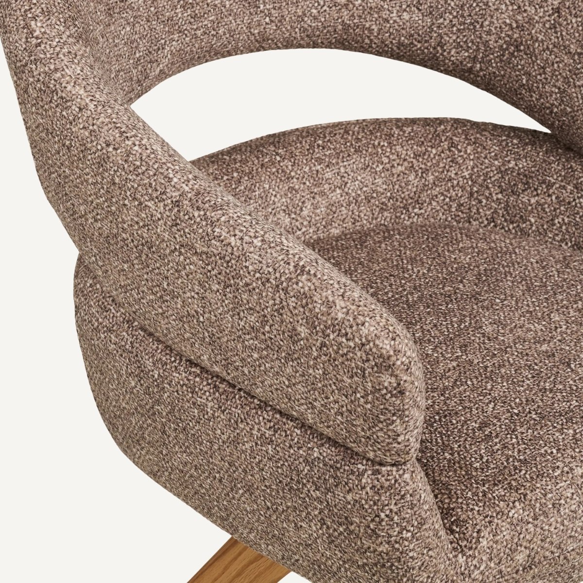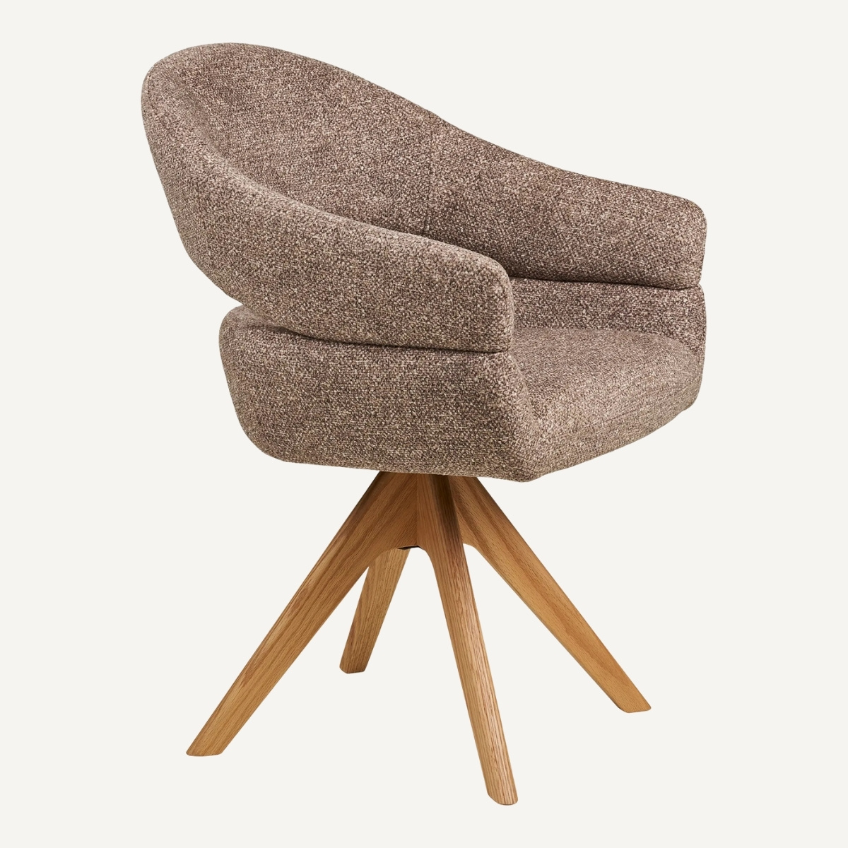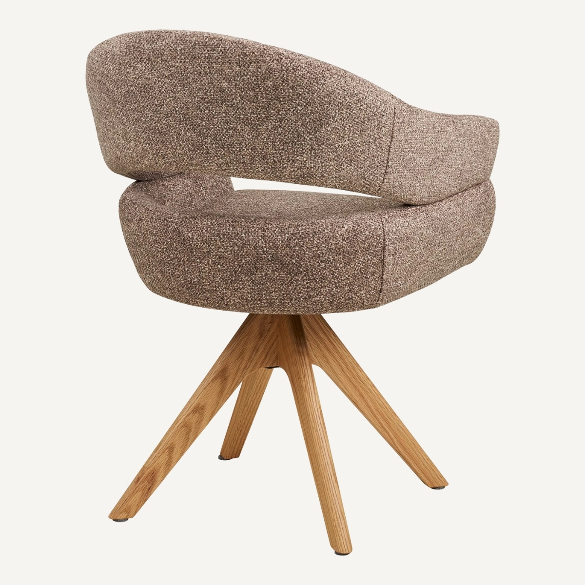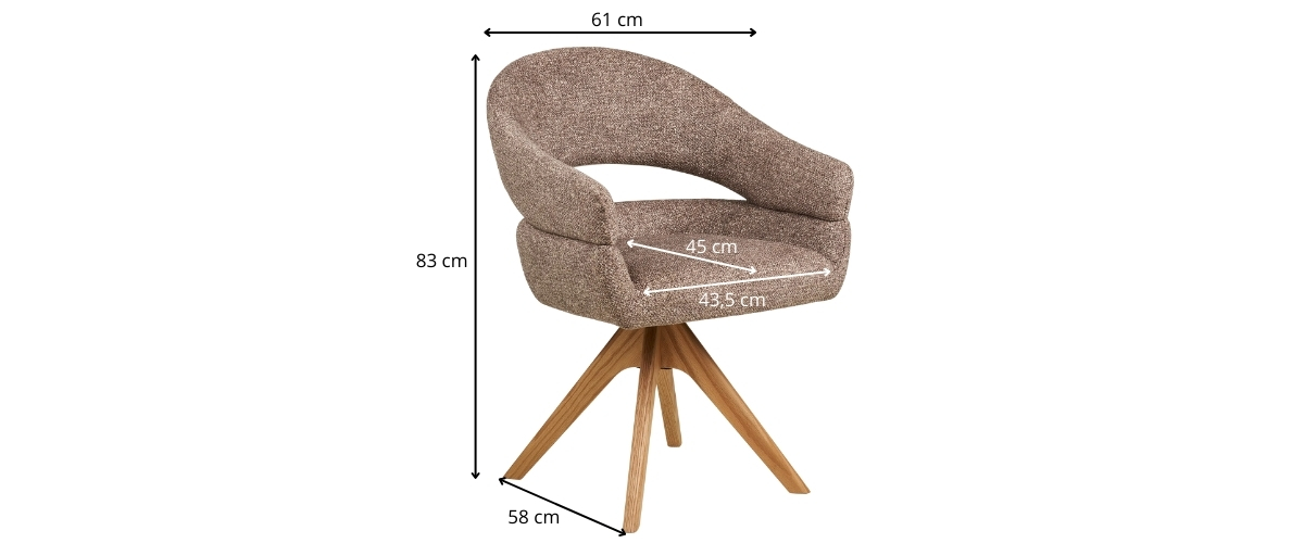 Ce fauteuil de table rotatif en tissu chenille texturĂ© couleur marron apporte instantanĂ©ment une touche chic et actuelle Ă votre salle Ă manger, tout en restant parfaitement adaptĂ© Ă un usage quotidien. Son revĂȘtement au grain dĂ©licat capte la lumiĂšre avec subtilitĂ© et offre un toucher doux, tandis que lâassise gĂ©nĂ©reuse et le dossier enveloppant assurent un maintien confortable pour les repas qui sâĂ©tirent. La fonction rotative ajoute une vraie libertĂ© de mouvement Ă table, avec une sensation fluide et pratique au quotidien. CĂŽtĂ© structure, les pieds en chĂȘne massif signent une finition haut de gamme et une belle stabilitĂ©, avec un charme naturel qui rĂ©chauffe la piĂšce. Associez-le Ă une table en bois clair, travertin ou noir mat pour accentuer le contraste Ă©lĂ©gant du sable et du chĂȘne.