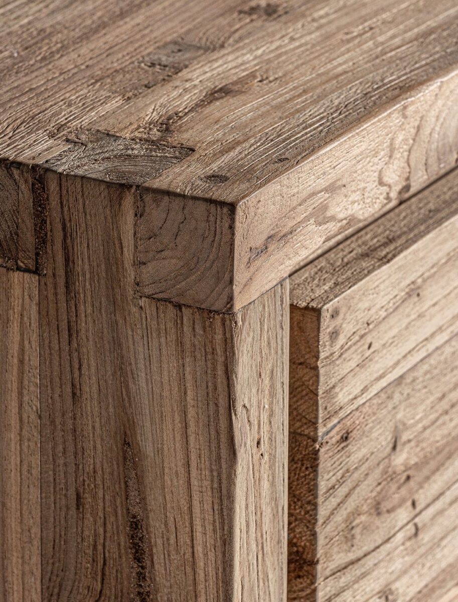 Le “bois de chemin de fer” (souvent issu d’anciennes traverses) est un bois très dense et marqué, avec un aspect brut et une patine naturellement irrégulière. Pour entretenir votre grande table en bois massif de 400 cm SAMUEL, dépoussiérez régulièrement avec un chiffon doux et sec (ou une brosse douce pour aller dans les aspérités). Pour un nettoyage léger, utilisez un chiffon à peine humide avec un savon très doux, puis séchez immédiatement : ce bois peut présenter des reliefs et des zones plus poreuses qui n’aiment pas l’humidité qui stagne.