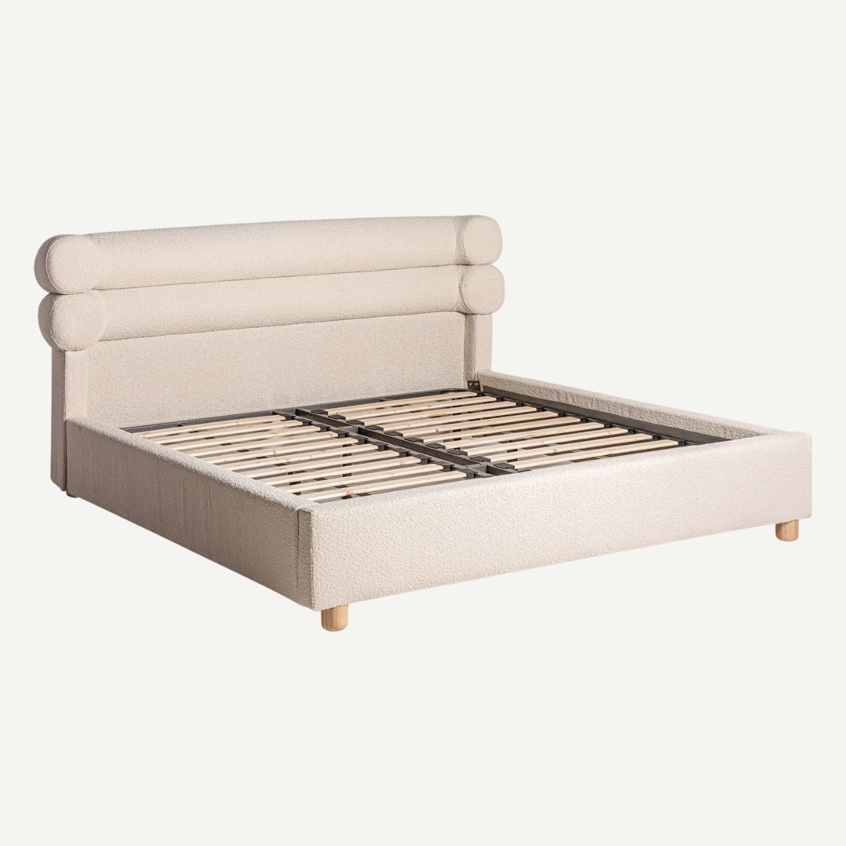 Ce lit king size 180×200 cm se drape d’un tissu bouclĂ© beige, doux comme une Ă©treinte et chaleureux comme une Ă©vasion. Sa tĂŞte de lit aux volumes gĂ©nĂ©reux dessine une silhouette singulière, Ă la fois contemporaine et enveloppante. PortĂ© par de dĂ©licats pieds en bois, il transforme la chambre en refuge apaisant, oĂą chaque nuit devient une parenthèse de sĂ©rĂ©nitĂ© et de raffinement.
