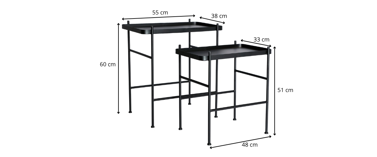 Le métal est un matériau solide et durable, mais son entretien dépend surtout de sa finition (peinte, thermolaquée, brossée, brute…). Pour entretenir votre lot de 2 tables d’appoint en métal noir VANINA, dépoussiérez régulièrement avec un chiffon doux et sec. Pour nettoyer, utilisez un chiffon légèrement humide avec un savon doux si nécessaire, puis rincez avec un chiffon propre humide et séchez soigneusement afin d’éviter les traces et les dépôts.