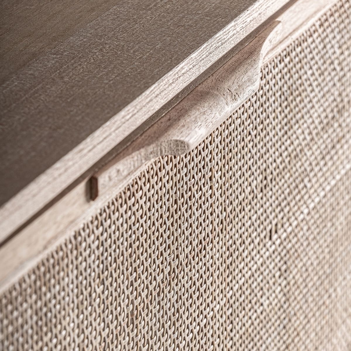 Ce meuble à chaussures s’inspire du style scandinave avec son association élégante de bois clair et de rotin naturel. Conçu en bois de frêne, il est doté de compartiments basculants pratiques, dont un habillé d’une façade en cannage de rotin. Reposant sur des pieds fins en bois, il apporte une touche bohème et chaleureuse à l’entrée tout en offrant un rangement fonctionnel et raffiné pour vos chaussures.