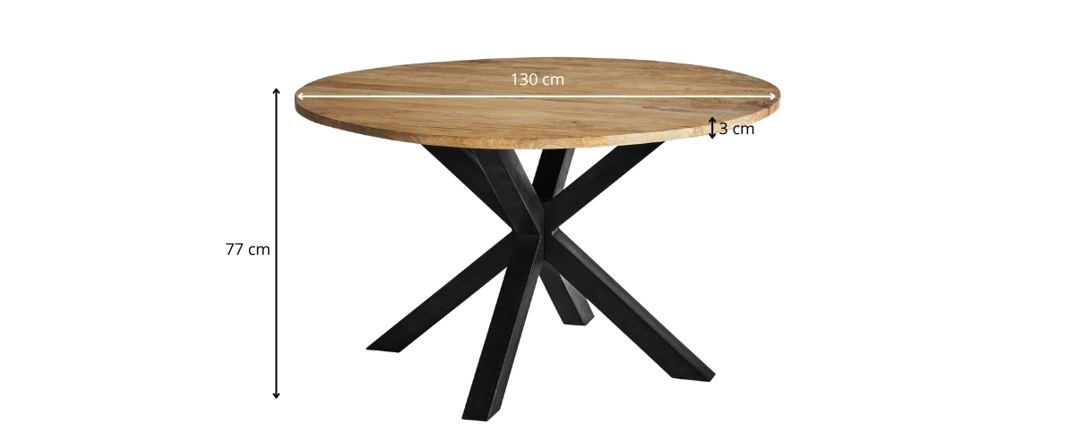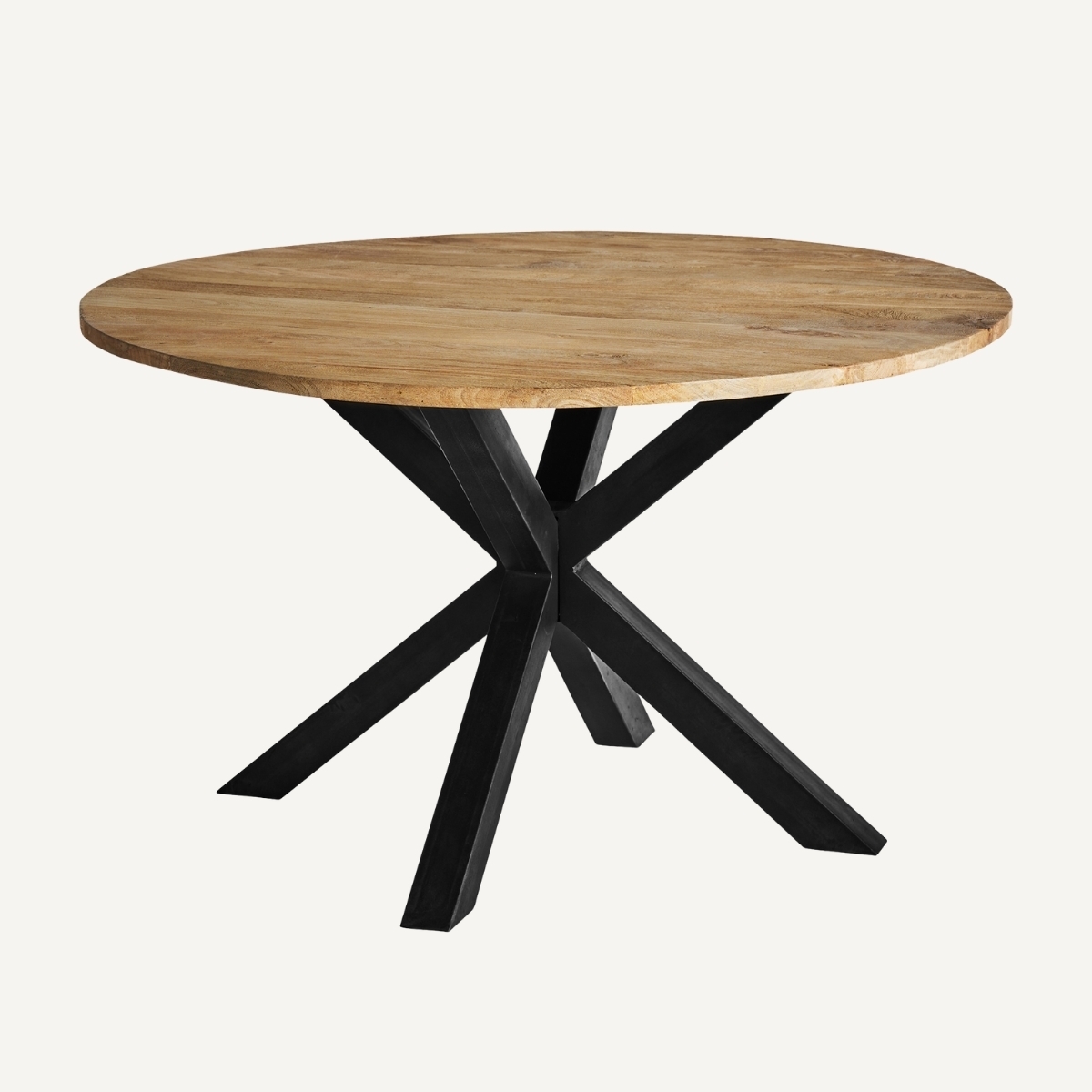 Table à manger ronde 130 cm manguier et métal noir MARINE