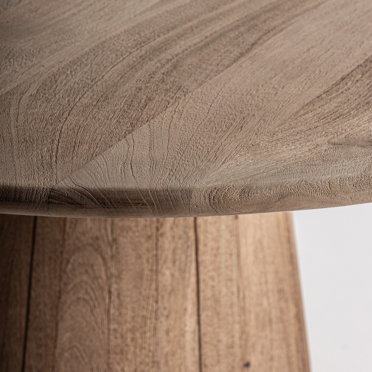 Pensée comme un cercle de rencontres et de matière vivante, cette table de repas ronde en bois de manguier révèle la vision d’un designer qui sculpte l’équilibre autant que la forme : un plateau généreux, aux bords subtilement adoucis, laisse apparaître les nœuds, les fissures et les nuances naturelles du bois, tandis que le piètement central, massif et facetté, ancre la pièce dans une présence presque architecturale, à la fois brute et raffinée ; chaque repas devient alors un moment suspendu, réuni autour d’un meuble haut de gamme où le geste artisanal dialogue avec le design contemporain, et qui s’inscrit naturellement aux côtés d’autres tables de repas ou pièces en bois massif à découvrir pour prolonger cette harmonie.