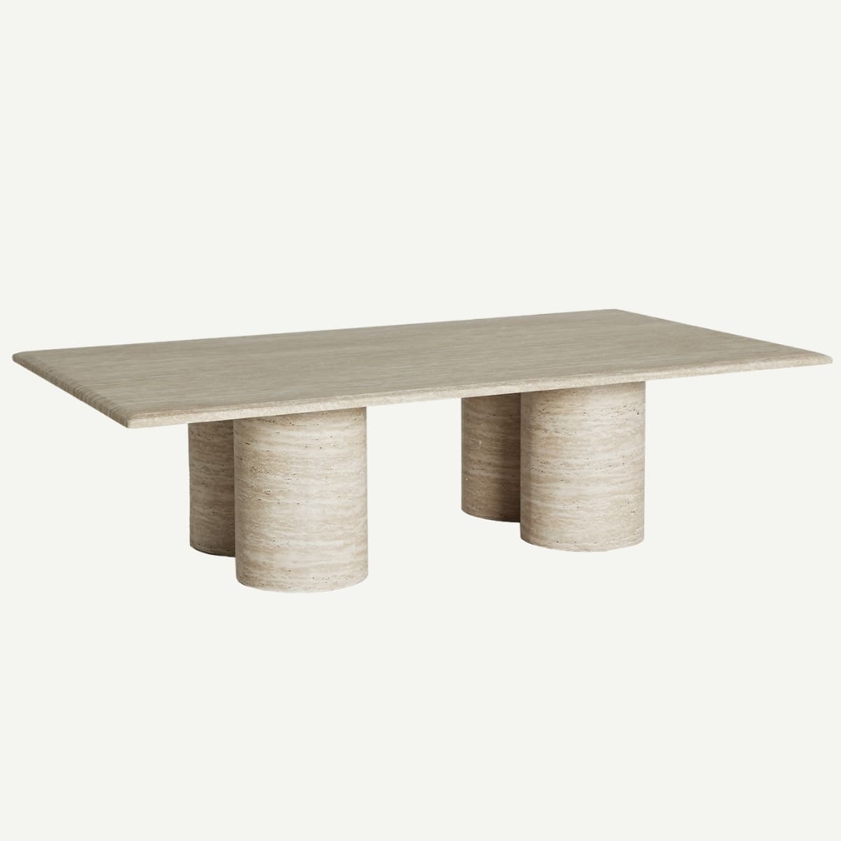 Tel un fragment d’architecture posé au cœur du salon, cette table basse rectangulaire joue avec les lignes et les volumes. Son imitation marbre beige, douce et lumineuse, se déploie comme une surface minérale, soutenue par des colonnes cylindriques au caractère sculptural. Une pièce qui évoque la sérénité des temples antiques tout en insufflant une modernité saisissante.