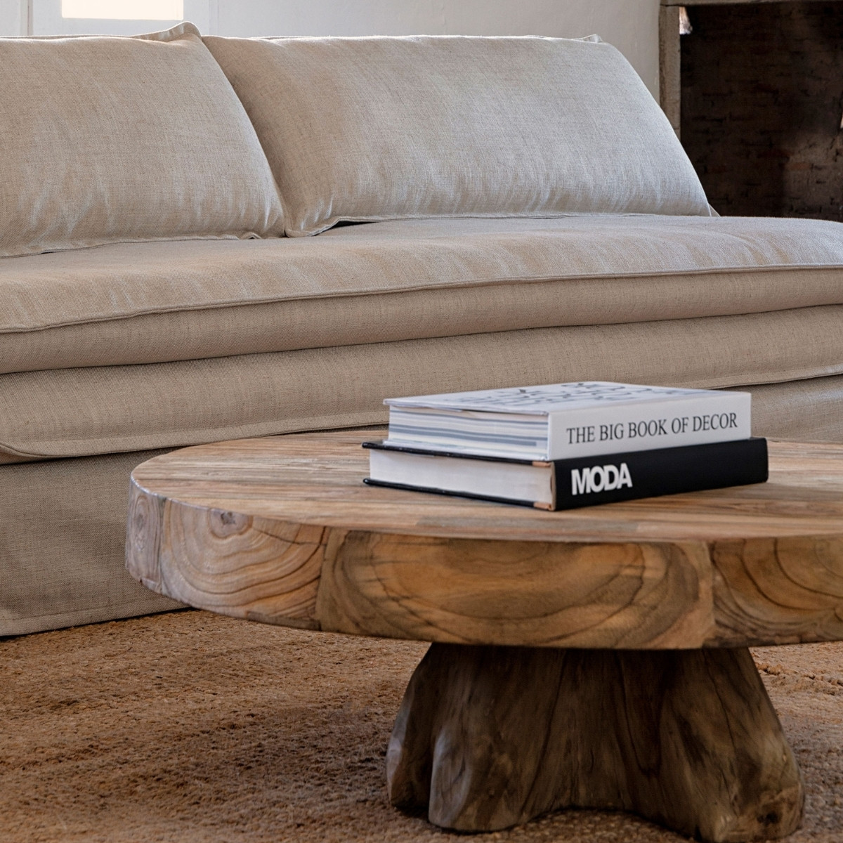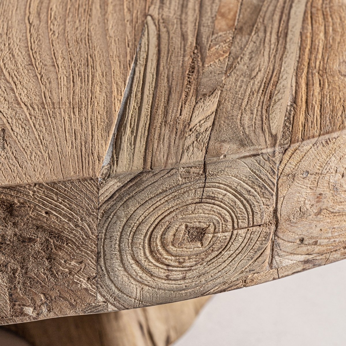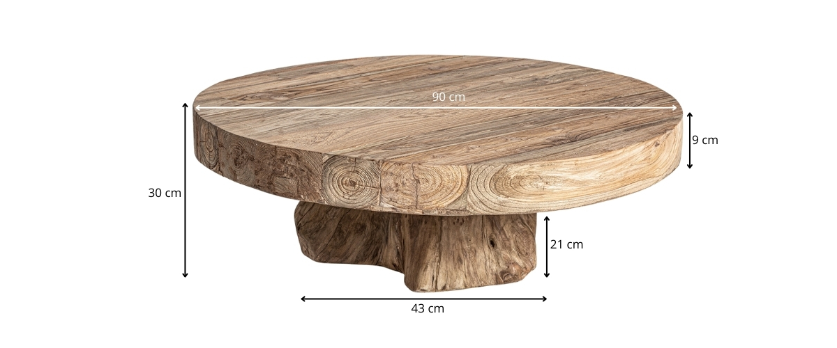Le bois recyclé est un bois avec une histoire : il peut présenter des nuances, des aspérités, des irrégularités et une patine naturelle qui font tout son charme. Pour entretenir votre table basse ronde rustique 90 cm SAMUEL, dépoussiérez régulièrement avec un chiffon doux et sec, et utilisez une brosse douce si le bois est très texturé. Pour un nettoyage léger, passez un chiffon très légèrement humide avec un savon doux si nécessaire, puis séchez immédiatement afin d’éviter les traces et l’humidité qui pourrait pénétrer dans les zones plus poreuses.