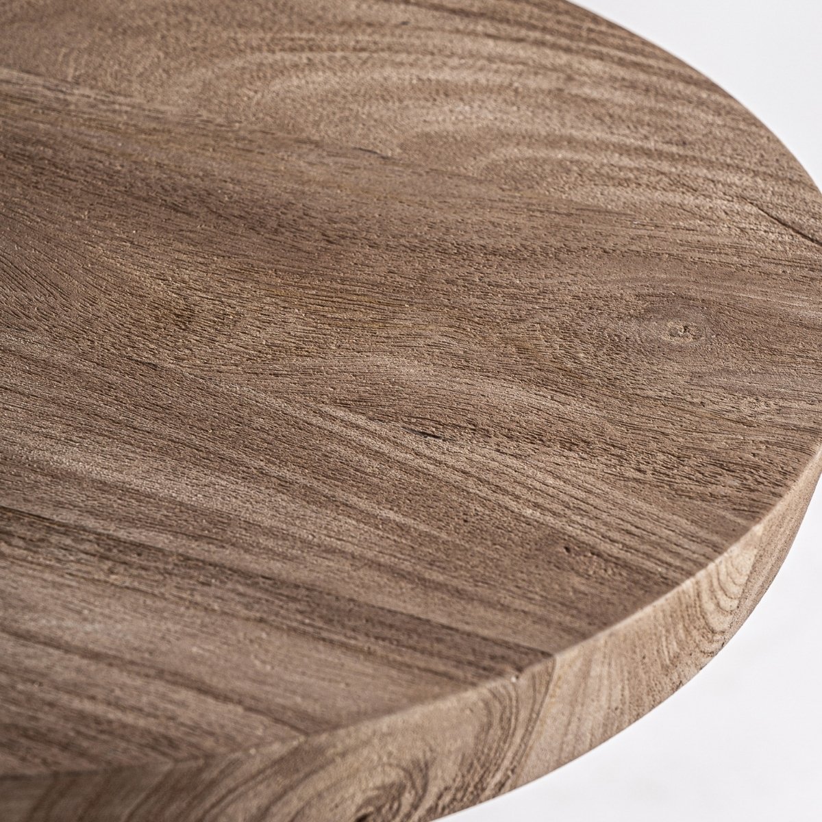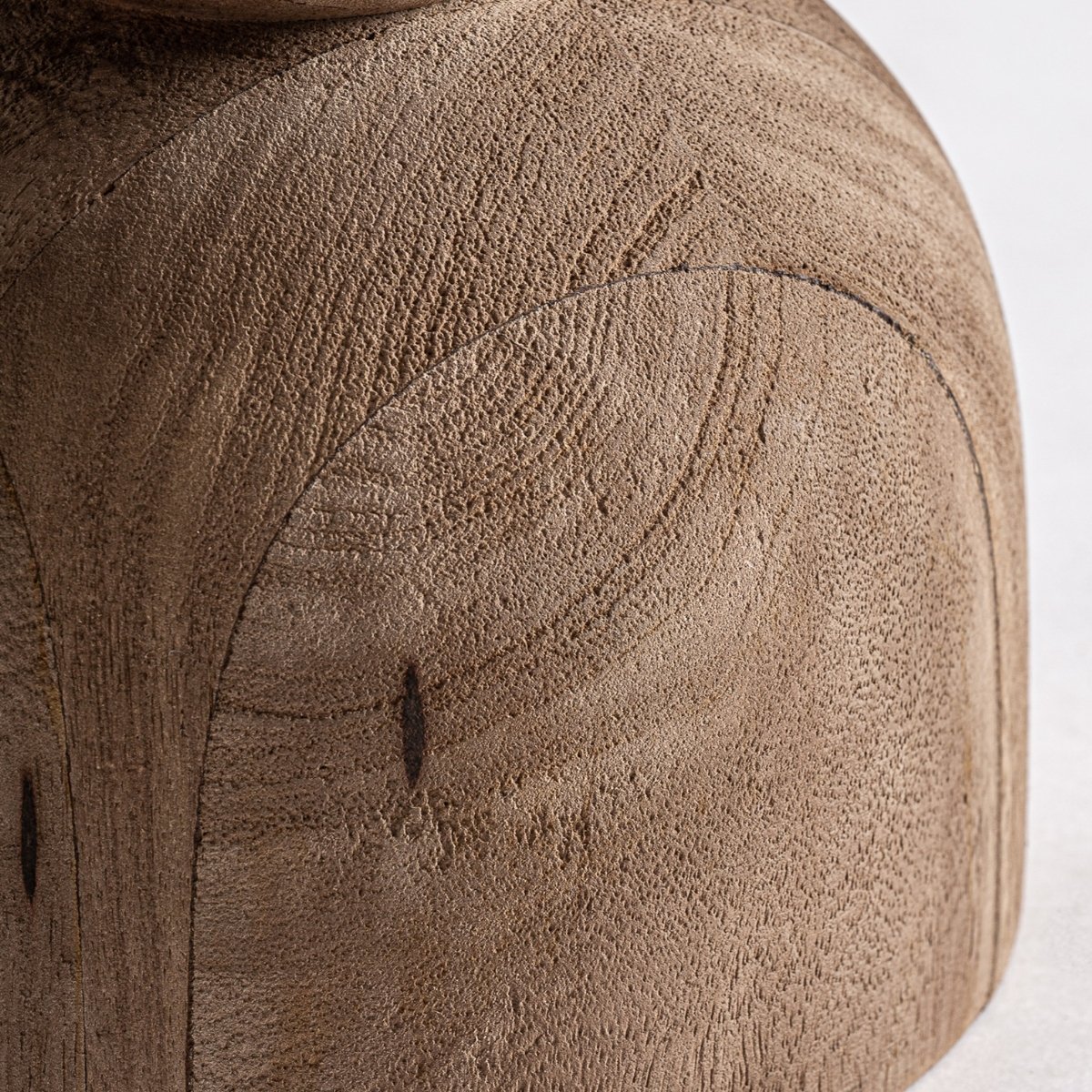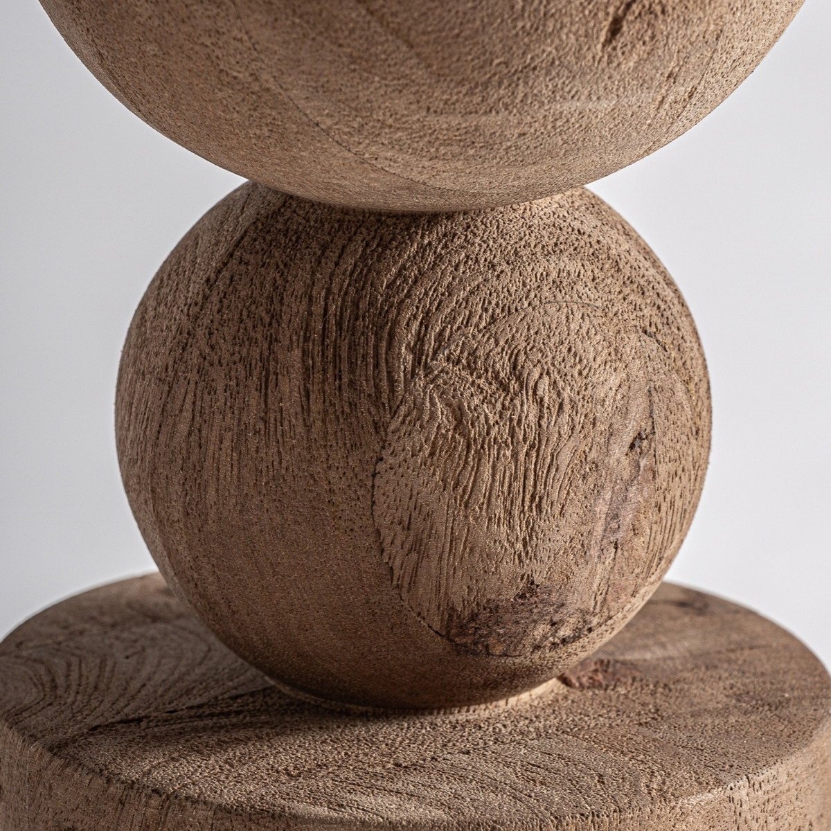 Cette table d’appoint en bois de manguier massif semble sortie d’un rêve de sculpteur. Ses formes sphériques empilées, parfaitement équilibrées, dessinent une silhouette totémique à la fois primitive et raffinée. Avec son plateau rond de 41 cm et ses 56 cm de hauteur, elle accueille une tasse de café, un livre ou une fleur séchée comme on pose une offrande.