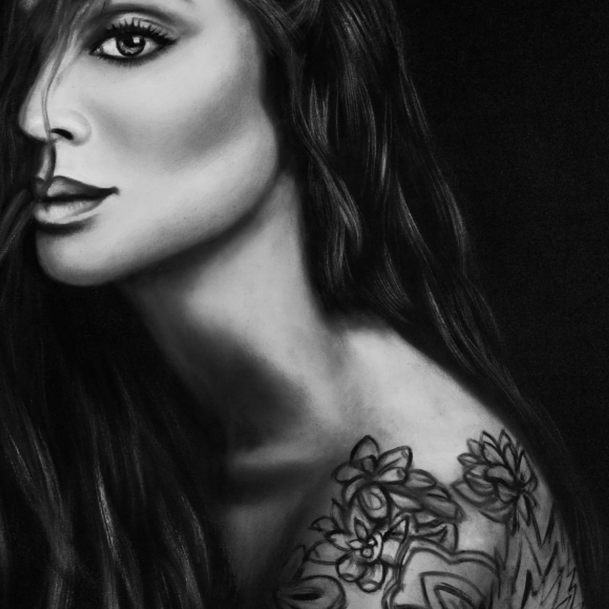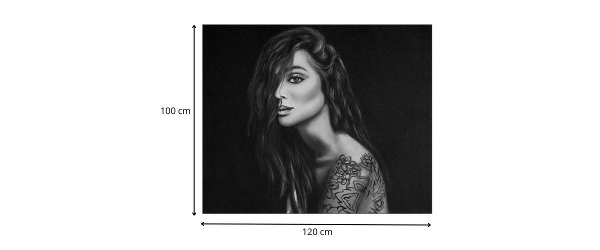 Cette impression sur toile en noir et blanc capte la force silencieuse d’un regard qui ne se laisse percer qu’à moitié. Dans un jeu d’ombres subtils, le visage apparaît, en partie dissimulé par une mèche rebelle, renforçant l’aura de mystère qui enveloppe la scène. Les tatouages floraux, délicatement tracés, contrastent avec la douceur du modelé et racontent une histoire que l’image laisse volontairement en suspens.
